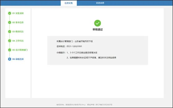 一、【进行信息采集】先注册,并完成实名认证扣,再登录成功后,点击首页的会计人员信息采集进入到信息采集页面,或者会计人员信息服务下的信息采集,如下图所示: