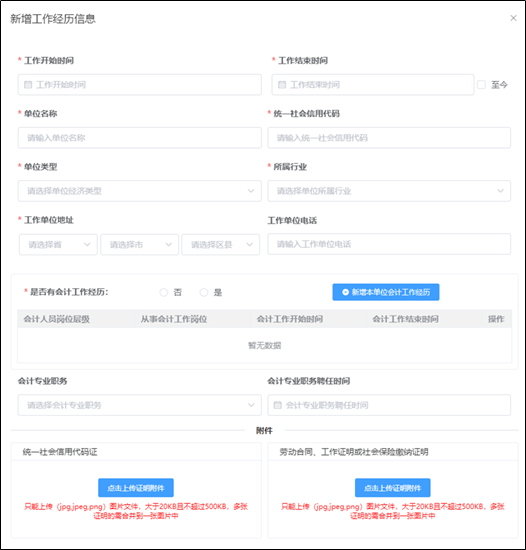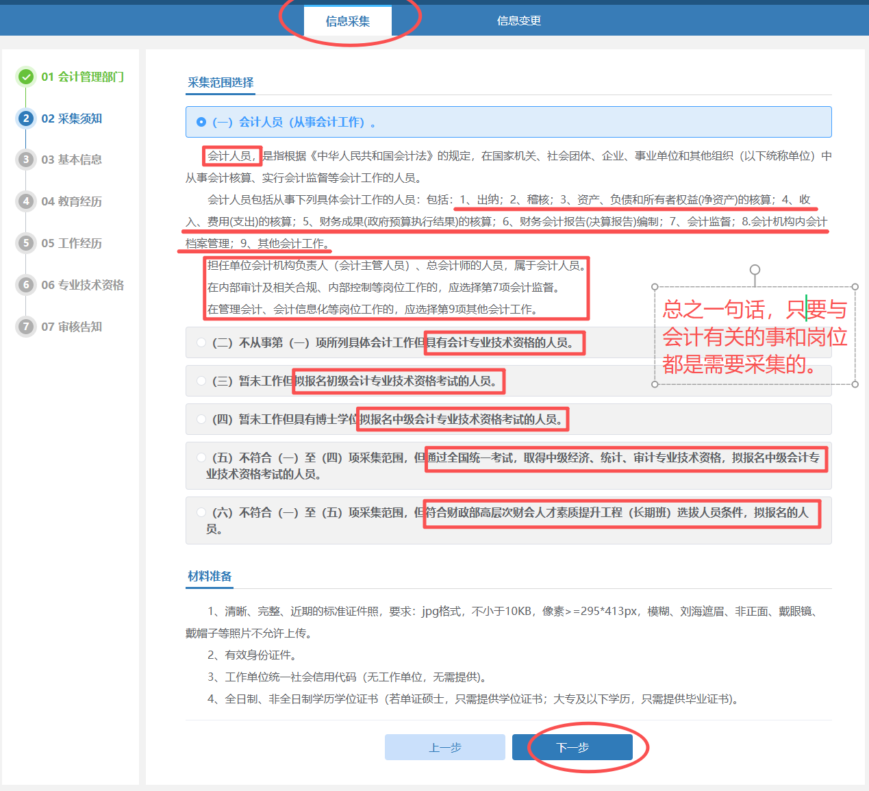 选择“会计人员”的,后面“工作经历”采集时需要填写“会计工作经历”。