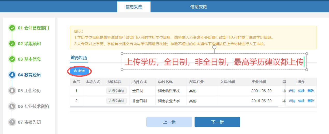 选择“暂未工作但具有博士学位拟报名中级会计专业技术资格考试的人员”,后面“教育经历”采集时需填写“博士”学位。