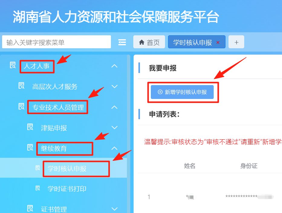 三、学时核认申报第5步:点击“新增学时核认申报”。